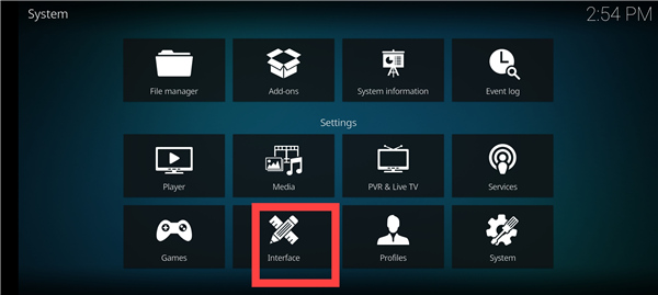 1、新安装好的 Kodi 启动后是英文版的界面,Kodi 包含多国语言,我们可以设置改成简体中文界面,点击设置设置齿轮键;