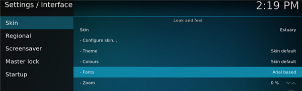 3、然后点击“Skin”在Fonts中选择Arial based字体。(非常重要!!!否则会乱码)