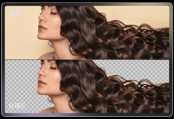 每根头发都清晰可见,支持人像、商品甚至微小商标等全品类抠图,4K 无损画质输出。