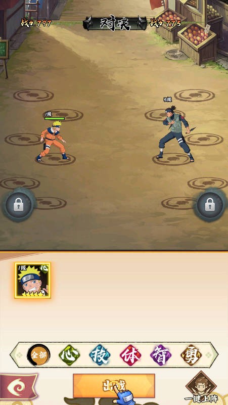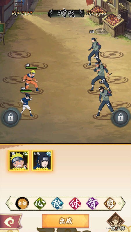 2、游戏中的操作并不复杂,玩家可以挂机自动修炼,一键召唤你的忍者小队。