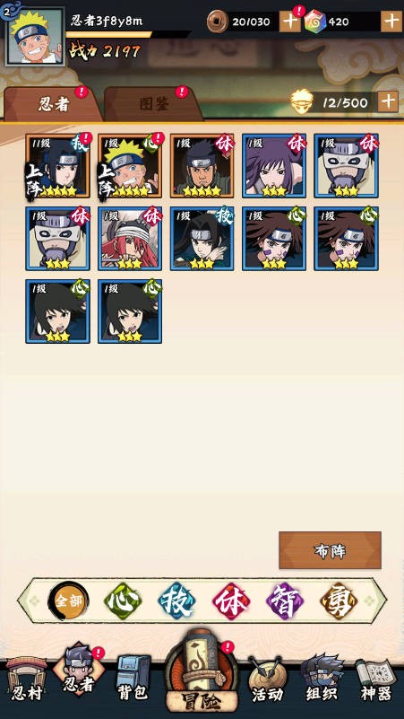 2、忍者轻松收集,鸣人一键上阵