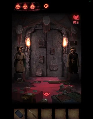 14、将两张【半张照片】放进相框里,神龛木板上拿到【鬼头刀】,用【鬼头刀】劈开木门,逃出屋子。
