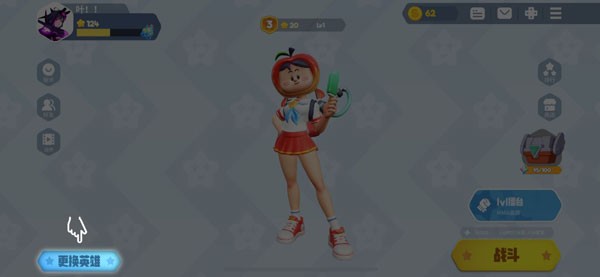 1、点击主页面左下角的“更换英雄按钮”,进入到英雄选择页面;