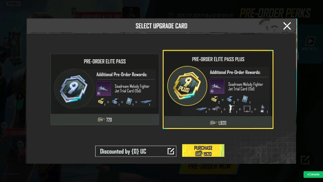 亦可选择花费1920UC升级ELITE PASS PLUS