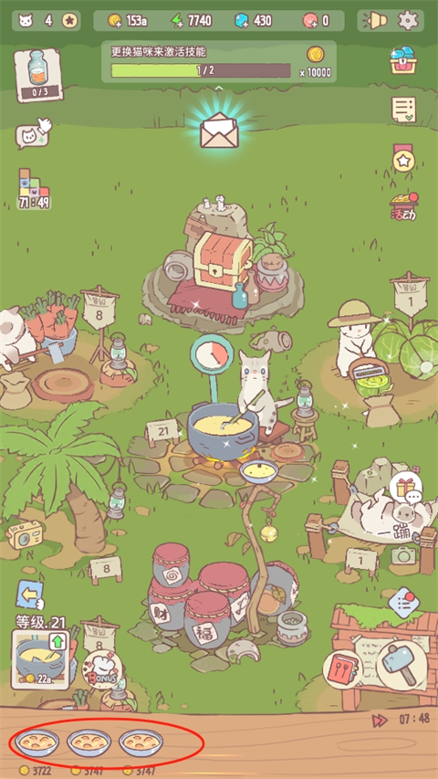 游戏中的经济体系设计得十分有趣,小猫咪们通过三种主要的设施来为我们赚取金币:煮汤点、果汁点和炒菜点。这些设施能够生产出多种美味的汤品、果汁和炒菜,而这些商品的销售则是我们获取金币的主要方式。因此在游戏初期,我建议玩家们应当优先考虑使用手头的金币对这些设施进行升级,这样可以显著提高商品的价格,从而带来更高的利润。