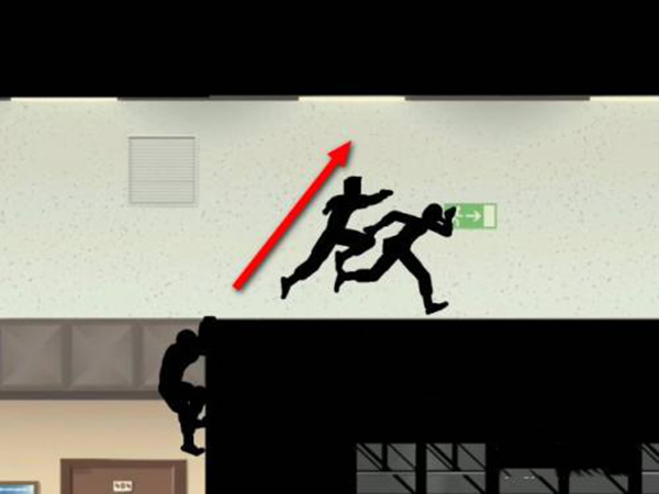 3、是图二上来后的场景,可以看到第一个人的头部前面一点有个类似窗户的东西,在人物到达窗户最左边的位置时跳一下,差不多就是帽子人现在的那个位置,