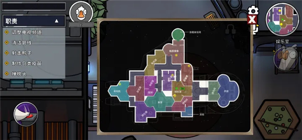 3、和太空狼人杀一样,鹅鸭杀的地图中也有很多的任务点,鹅完成任务的所有进度就可以取胜,鸭子则可以破坏鹅做任务的进度。鸭子可以做破坏任务来造成场面混乱,坏人也可以做好人任务,但任务无效。