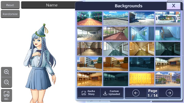 3、点击左下角的BG,玩家可以在这里为自己的角色选择不同背景,也可以上传图片自定义背景哦