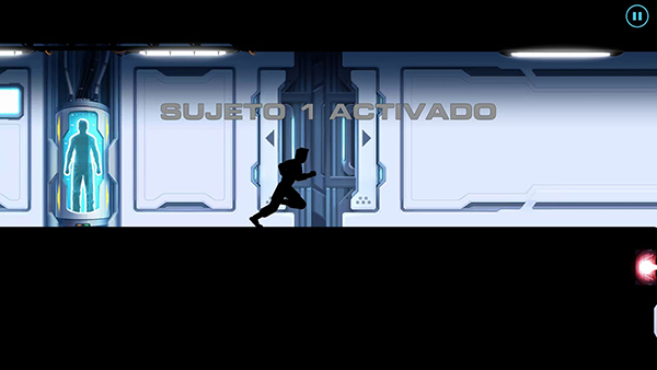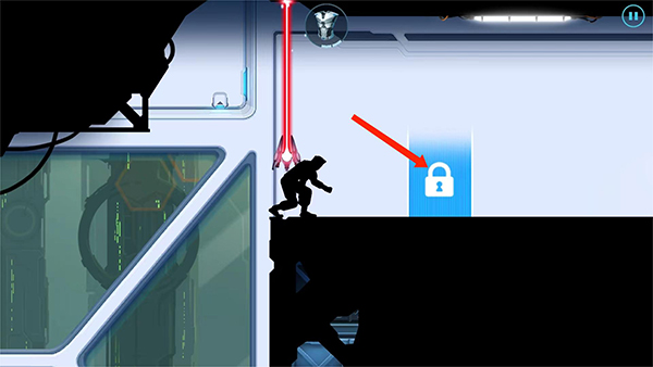 2、开始跑酷,前方有激光障碍物,往上滑动屏幕,角色就会跳动来跳过障碍物,