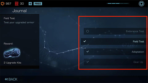 9、选择下方【笔记本】图标,可进行现场试验、耐久性试验以及跑酷前的准备,
