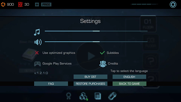 11、选择右上角【齿轮】图标,可进行声音、音乐、语言等方面的设置,以上就是矢量跑酷2的游戏玩法了。
