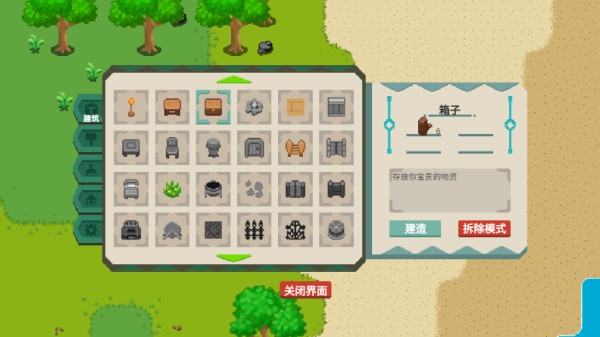 7、点击建筑可以进入建筑面板,选择要打造的物品,如箱子,会给出建筑所需材料,点击建造即可。