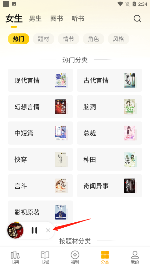 4、除了上面这个听书方法,你还可以在书城直接选择听书选项,在这里点进你想听的小说。
