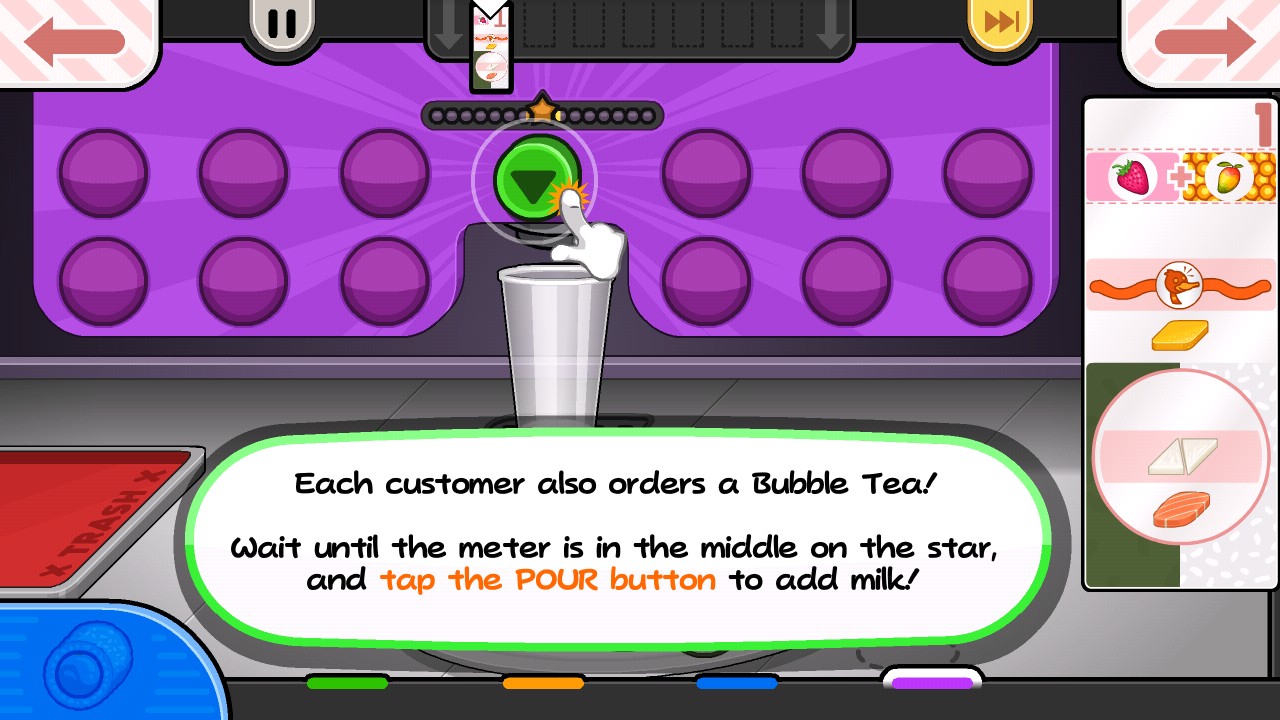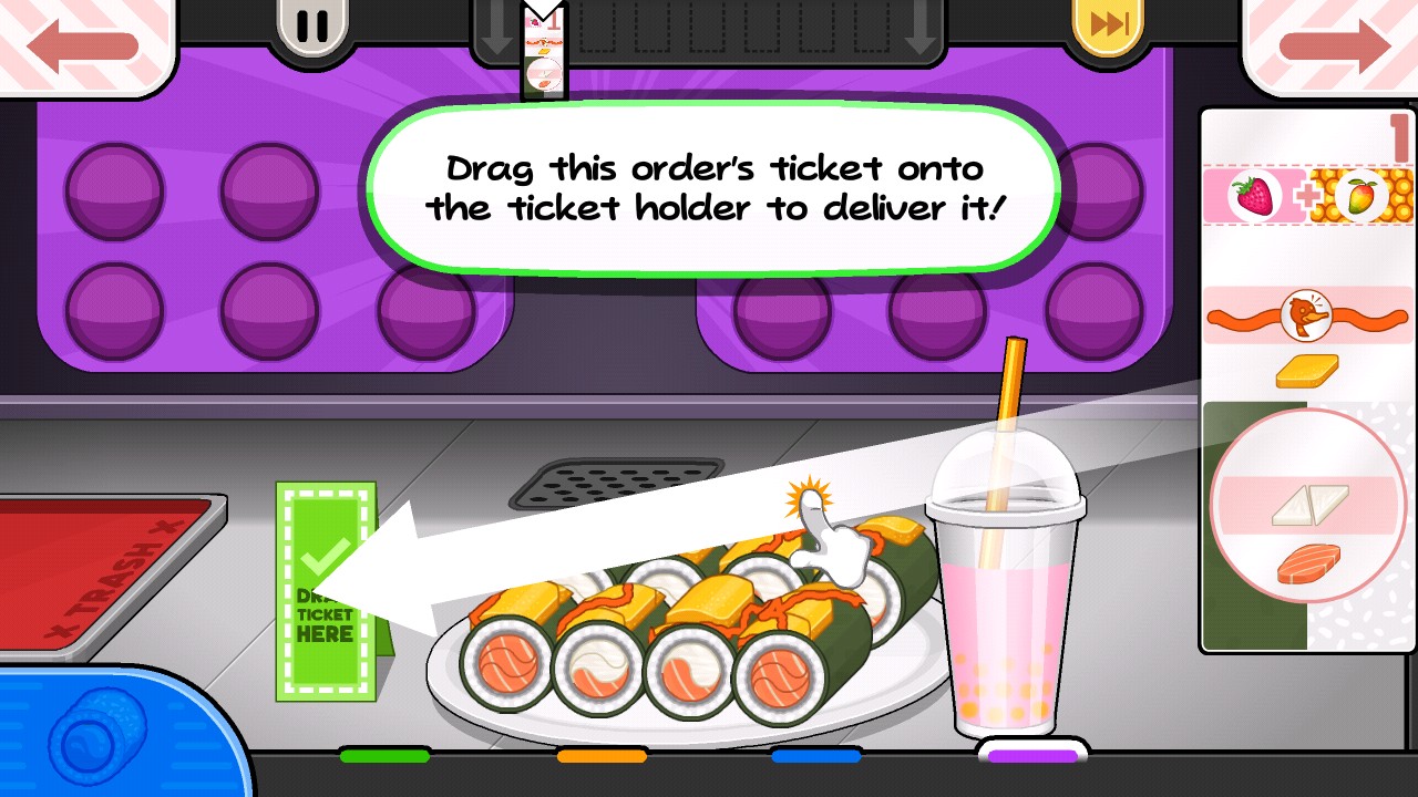 4、接下来就会为玩家介绍寿司店,点击右下角的按钮;进入订单站,顾客的订单都在这里;