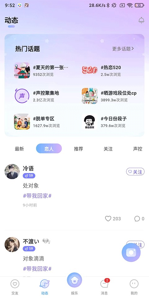 点赞、吐槽、心灵悄悄话、在动态广场,分享你的精彩。在陌生人海中,找到与你心灵契合的ta!