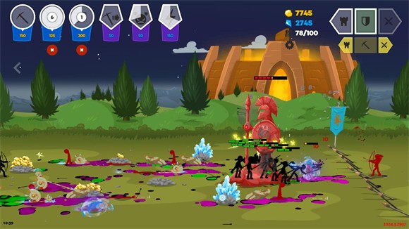 火柴人战争遗产3国际版是一款策略塔防游戏,延续了系列的横版战斗风格。游戏中,玩家将扮演火柴人部落的领袖,通过招募矿工采集资源、训练剑士、弓箭手等兵种来组建军队,并在实时战斗中操控军队发起进攻或者是进行防守。游戏给玩家提供了闯关、无尽挑战和联机对战三种玩法模式,每一种都需要玩家灵活调整配队策略。快来火柴人战争遗产3国际版打造你的最强火柴人部落吧!