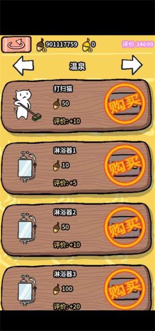 第一步是让橡子的产量高于购买道具的消耗。所以初期先不买道具,大量买设施,从最便宜的买起。设施数量堆起来后,就可以靠收取接待区的橡子供应道具消耗了。