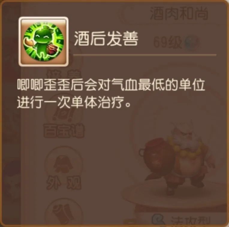 如果物理门派觉得高难度PVE环境里猪八戒和万圣公主实用性不够的话,也可以选择酒肉和尚加强奶量与伤害。