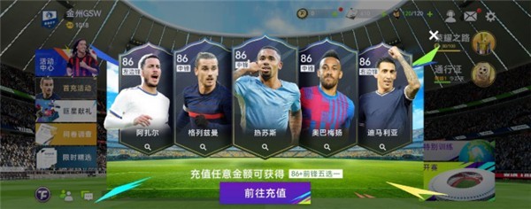 银球可以通过生涯赛获得,银球不限制获取数量,金球可以通过天梯比赛获得,金球每日上限15个。活动中40个银球+20个进球可以兑换77+的红卡球员。