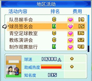 在比赛中获胜,或进行地区贡献活动会提高知名度。引进人气球员也会提高知名度。这样谈判时会更有利。