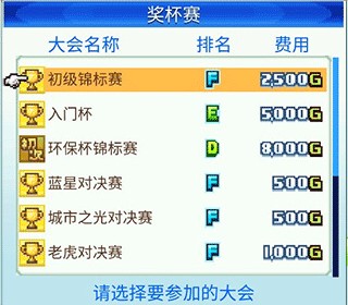 杯赛,有一对一的对决赛和锦标赛。锦标赛是在规定的比赛次数中持续获胜就会得到冠军,需要胜负强度。