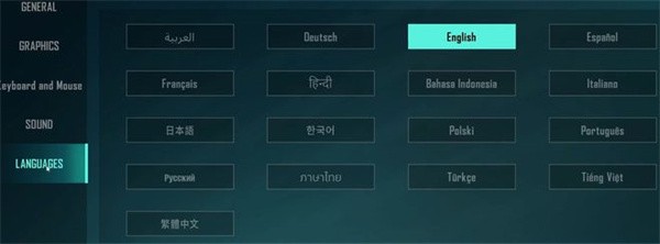 3、进入游戏设置界面,找到语言设置选项(最后一个,默认是英文:languages)。