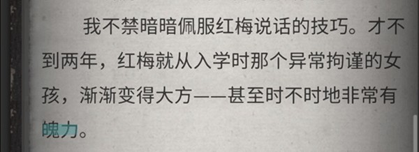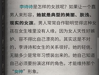 3、在故事的体验中,玩家自主找出线索,并利用线索,和角色对话后推进故事。玩家的选择将影响了解故事的不同侧面。严格的推理玩法。玩家将扮演一个神秘的联络者,通过和诸多角色的聊天推理出事件一层层真相。找出隐藏的凶手。