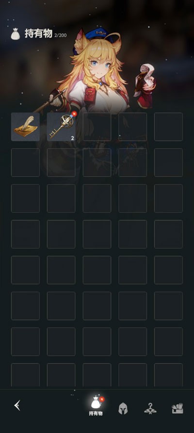 6、而点击右下角背包按钮,则可以查看自己的道具,以及武器装备