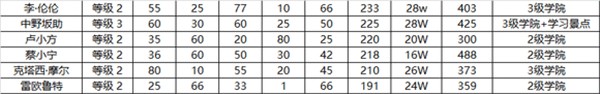 6、【中期老师选择②】中期标准:4级学院!按照满级数值排序的中期最好选择-前6名,