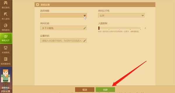 4、对房间设置好后,点击下方的创建房间,就可以和其他玩家联机了。