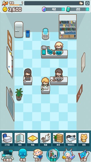 我的办公室凭借可爱的游戏画风和高自由度的游戏玩法,在同类游戏中脱颖而出。游戏采用Q版卡通画风,每个角色都有非常呆萌可爱的立绘。游戏的核心玩法融合了策略经营和随机事件,玩家需要合理安排员工的职位和资金的分配,而且玩家还可以使用金币购买装饰,自由设计办公室的设施布局。同时在经营的过程中,还会有各种各样的突发事件。