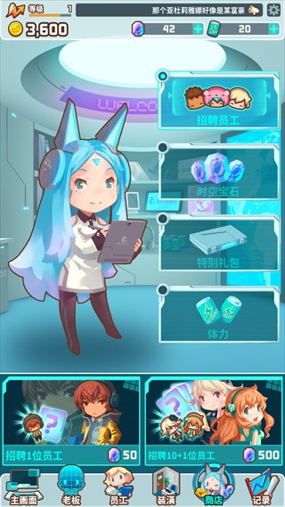 5、在员工界面可以查看当前雇员以及待聘的人员,在此还可以为自己员工进行升级。