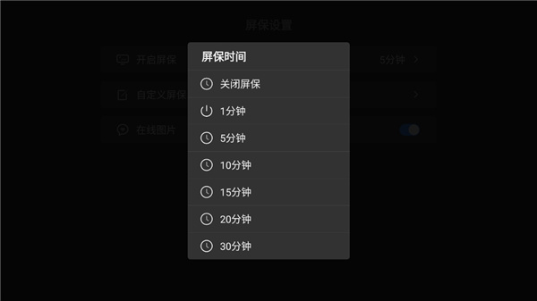 2、在“屏保设置”界面中有一个开启屏保,点击一下就可以设置屏保时间了哦。