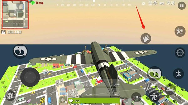 5、坐上飞机后通过左上角的小地图可以选择合适的跳落位置,点击手掌图标就可以跳伞;