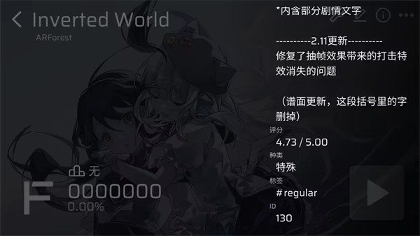 点击右上角“i”图标,进入谱面信息界面,在这里,你可以看到该谱面的以下内容:
