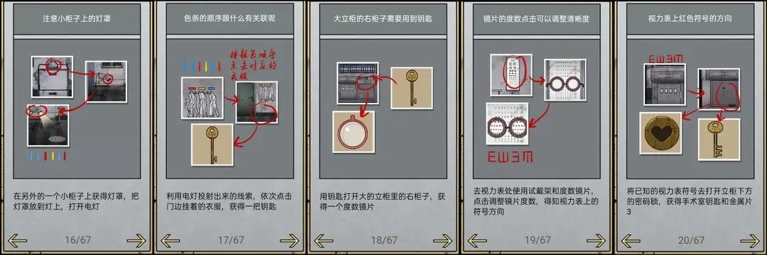 这里要说一下中医室木柜的解密,首先它和数独没有关系,也就是说一旦你用某种方法(例如相加或者相乘)得出数字,那你就被套路了。真正的解法是木框上刻的划痕代表了它所在的一列或者一行会有几个黄色面朝外的盒子。具体步骤如下: