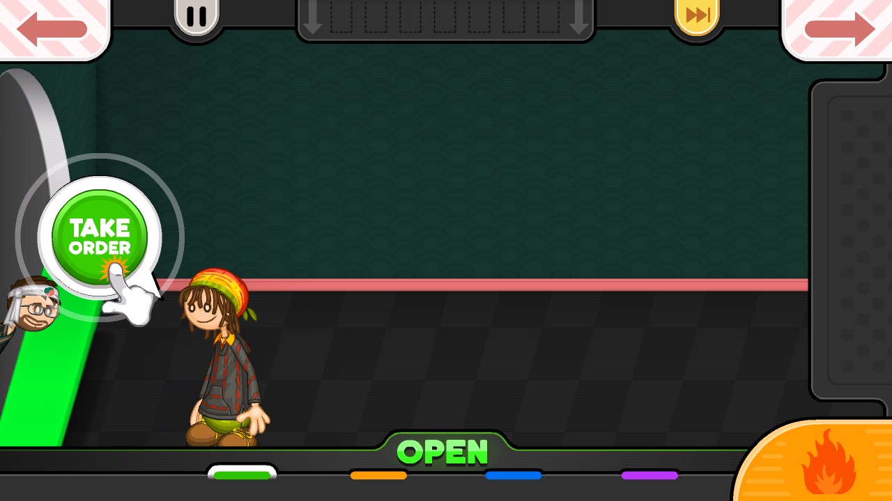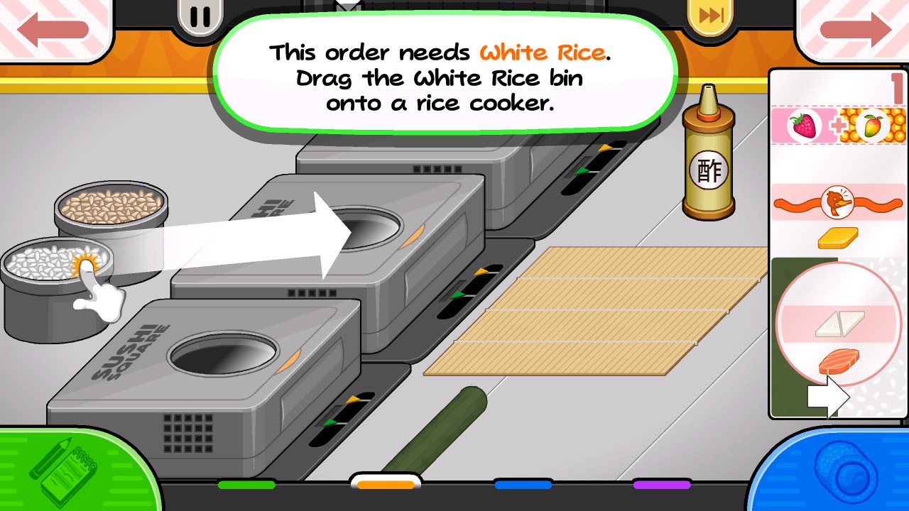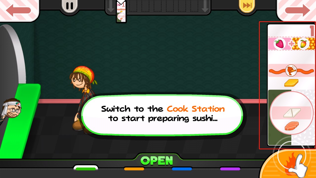 4、游戏会引导你熟悉寿司店的基本操作,点击右下角的提示按钮,进入订单接待区域。