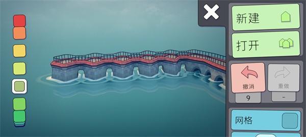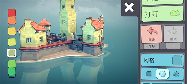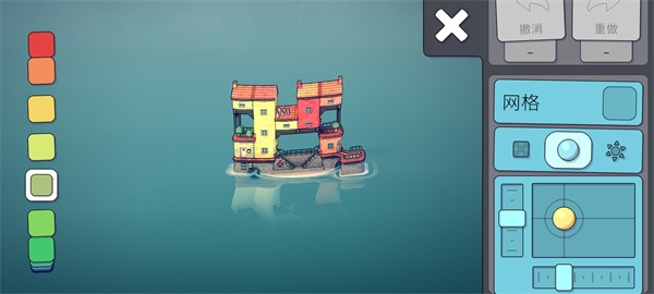 玩家们可以通过左侧的调色盘来选择自己喜欢的颜色,点击完喜欢的颜色之后,直接在屏幕上建造就会出现对应的颜色。(但是这里需要注意一点,就是地基的颜色是永远不会改变的都是红灰搭配。)