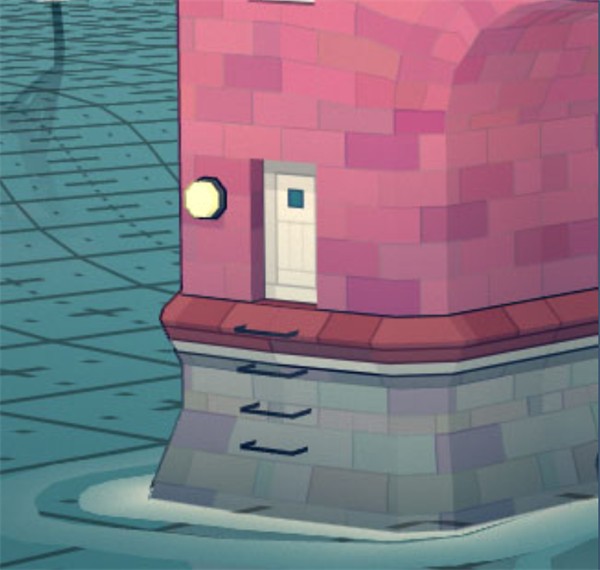 ②确保房屋颜色不同。如果使用相同的颜色,缺口上方的房子底部会出现脚手架。