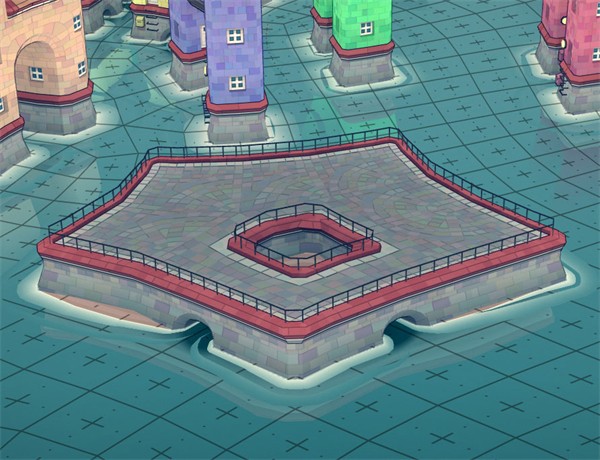 其次,相邻两个地基相连,会形成一个桥洞。如果斜着放置,怀疑形成一个较小的桥洞。