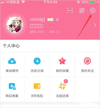 2、打开我的页面后,我们点击页面右上角如图所示的设置图标,进入设置页面;
