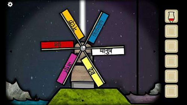 20、第六幕,根据钢琴画面墙上挂画的提示和洗手间三幅画,最右侧画的提示,可以得到风车颜色的排序是,粉红橘蓝白黄,正确排序之后就可以坐上电梯离开了。