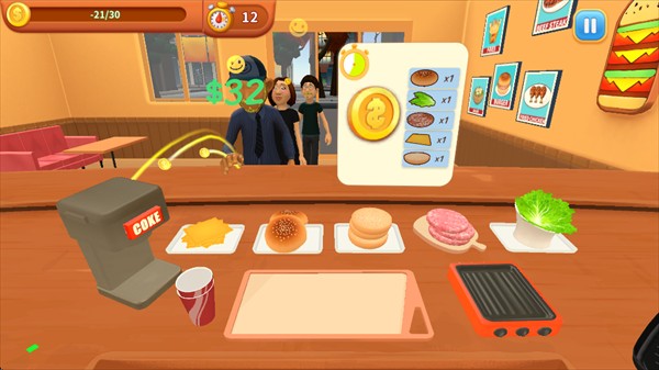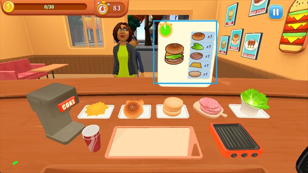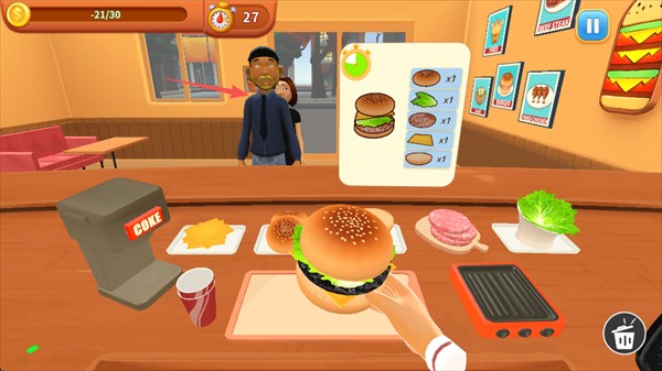 2、每个客人都需要不同的食物,还得快速制作出来,这样才能完成订单。