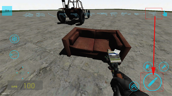 4、默认武器可移动物体,选择需要移动的物体后,长按开火键锁定后,在一直长按的状态下滑动开火按钮;