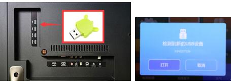 电视检测到U盘,弹出U盘界面,点击【打开】