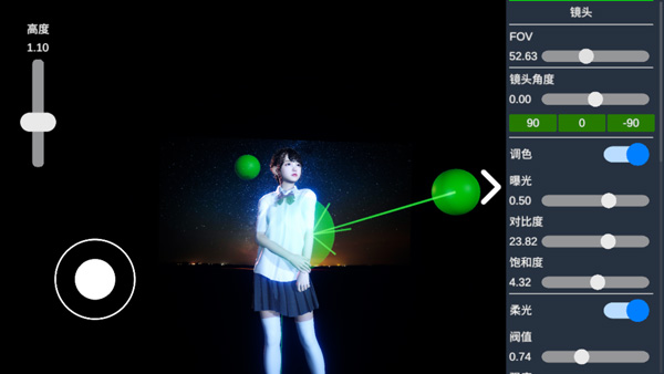 3、提供多种镜头特效,包括镜头,柔光,景深,色调等;