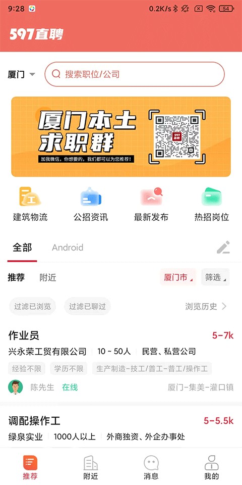 597直聘是一款适用于安卓手机系统、功能操作便捷的应用软件app,它凭借简单易上手的功能界面、定期更新新版本满足用户使用需求深受用户推崇。企业查询,它通过智能算法匹配技术,在一定程度上快速的帮助用户解决找工作的问题,有需求的小伙伴们快下载试试看吧 。需要的用户快来下载体验吧!