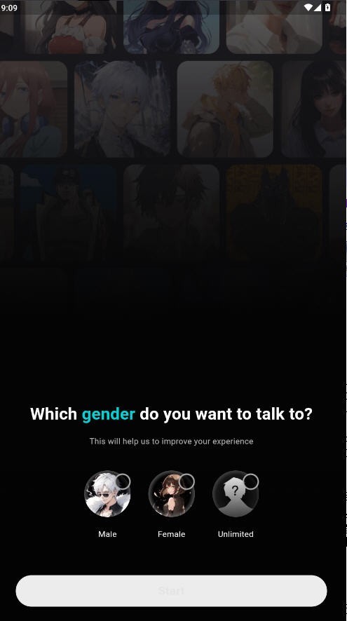 2、选择你想要的角色性别;