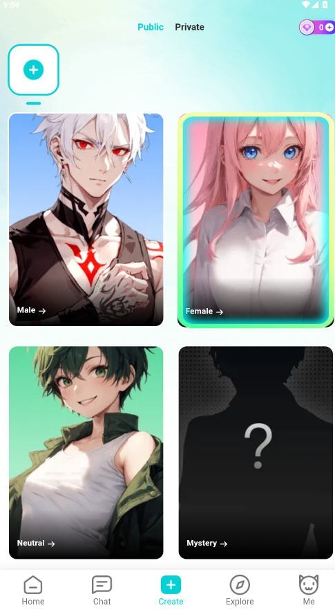 丰富的角色定制:BALA AI 拥有数十亿个 AI 角色供用户选择,这一庞大的数量远超同类产品。在角色性别上,除了常见的男女选项,还增加了 Neutral(中性)和 Mystrey(神秘人),尤其在性别保护敏感地区,这种设置充分尊重了用户隐私。用户还能自由定制角色的年龄和性格特点,通过选择多个描述人的形容词让 AI “学习”,如活泼的、潮流的、可爱的等。此外,用户可以文字叙述一段与角色相关的故事,绑定人物关系,使每个角色都具有个人专属性,让用户更易沉浸其中,增强与 AI 角色的粘性。