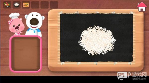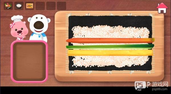 1、点击选择制作寿司,进入到厨房中,将制作寿司所需的食材都找出来